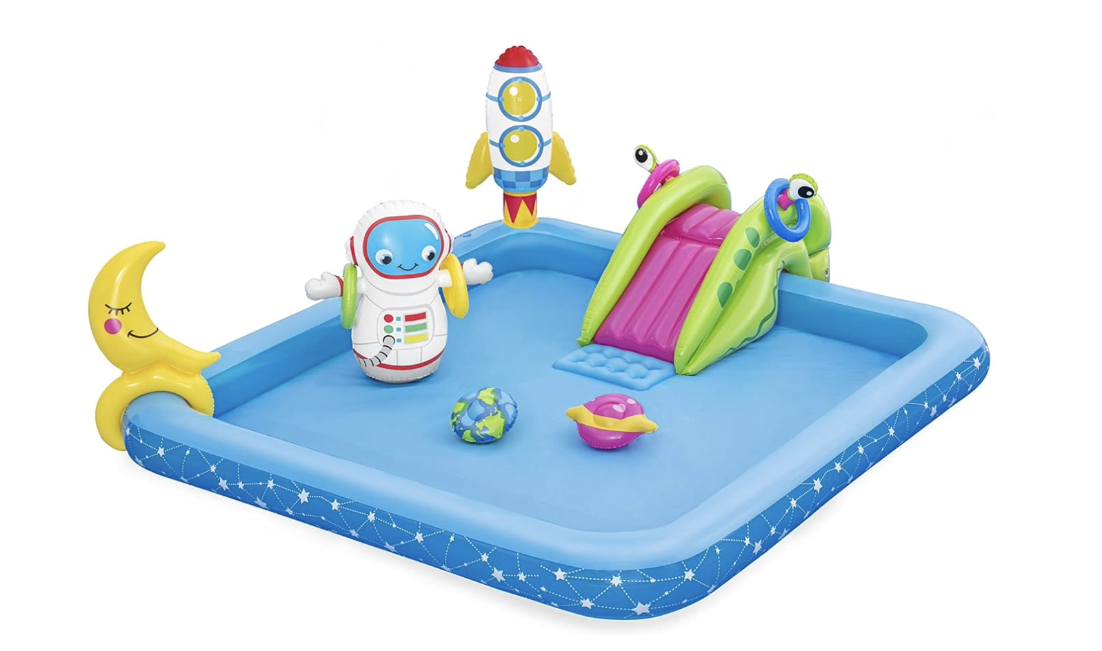 ¡Sumérgete en las estrellas con la Piscina de Baño Pequeño Astronauta de Bestway! Con capacidad para hasta dos niños, esta piscina inflable es ideal para los días calurosos de verano. Cuenta con un diseño llamativo de astronauta, un parasol incorporado para proteger del sol y un suelo acolchado para mayor comodidad. ¡Prepárate para la diversión acuática en el espacio!